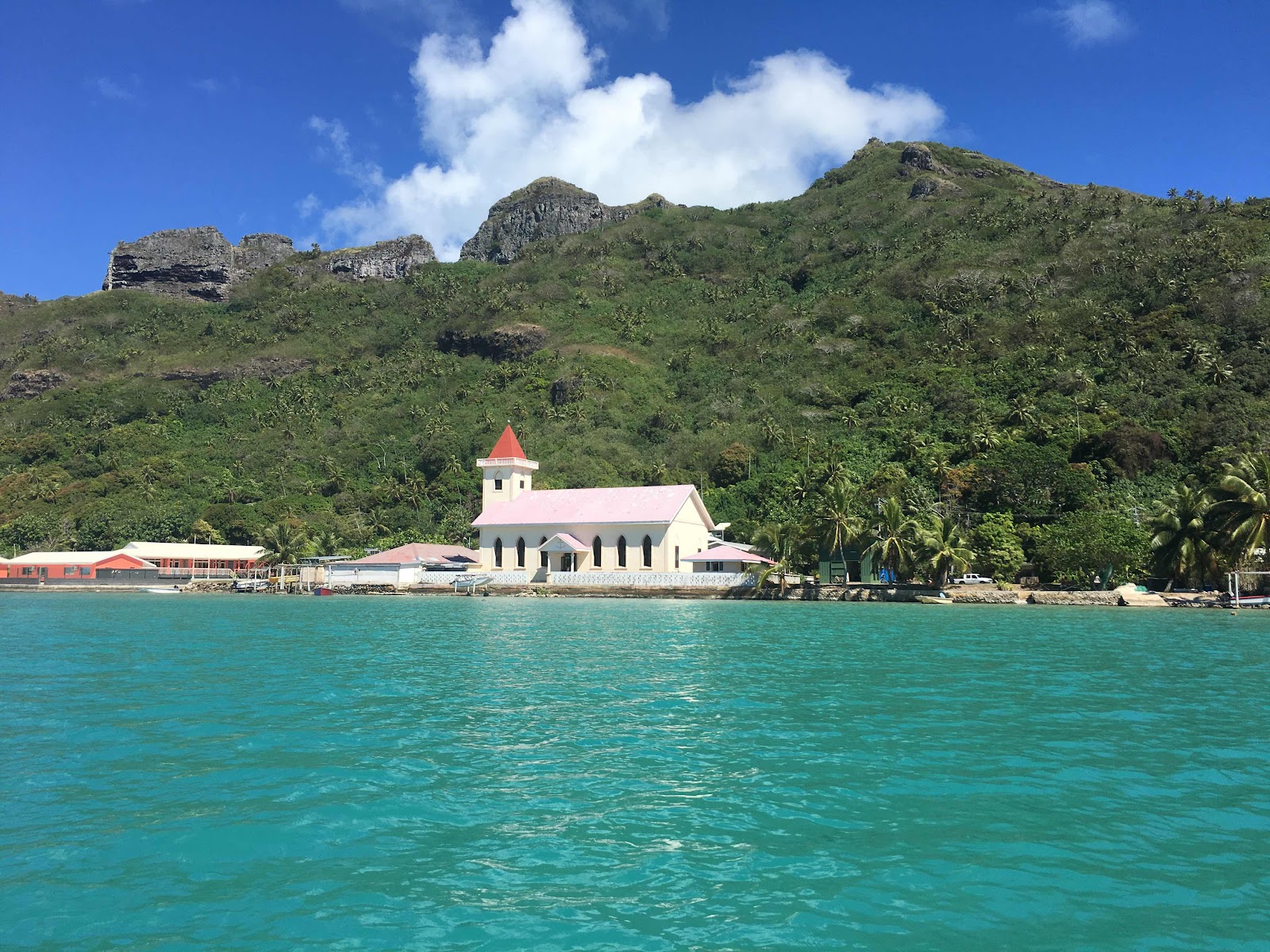 Once the shore side excursion was over, we motored the short distance across the Bay to anchor off Big Mamas resort on Pangaimotu and get some rest. Tonga was badly hit by Cyclone Gita in February of 2018. There was a lot of damage to the island chain and several boats were sunk. There were several wrecks around Nuku'alofa, including a wreck from the 1990's which had sunk as the result of an earlier cyclone. This particular wreck is right on the beach outside Big Mama's resort, and they have used the wreck to advertise the resort. The snorkelling around the wreck is also fantastic as over time it has become a reef.